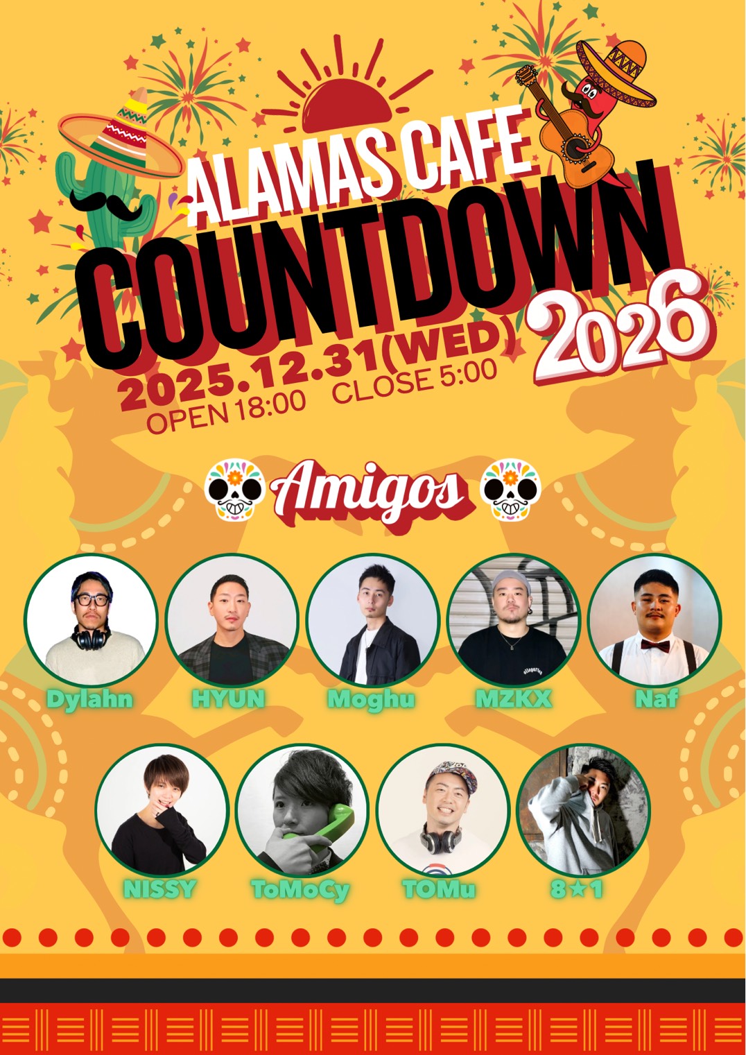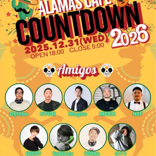 ALAMAS CAFE COUNTDOWN PARTY 2025 – 2026 12月 31 Wed 2025 #ALAMASCAFE ■ INFORMATION [開催日] 2025年12月31日(水) [営業時間] 18:00 – 5:00 [CAST] DJ: Dylahn, HYUN, Moghu, MZKX, Naf, NISSY, ToMoCy, TOMu, 8★1 前のスケジュール